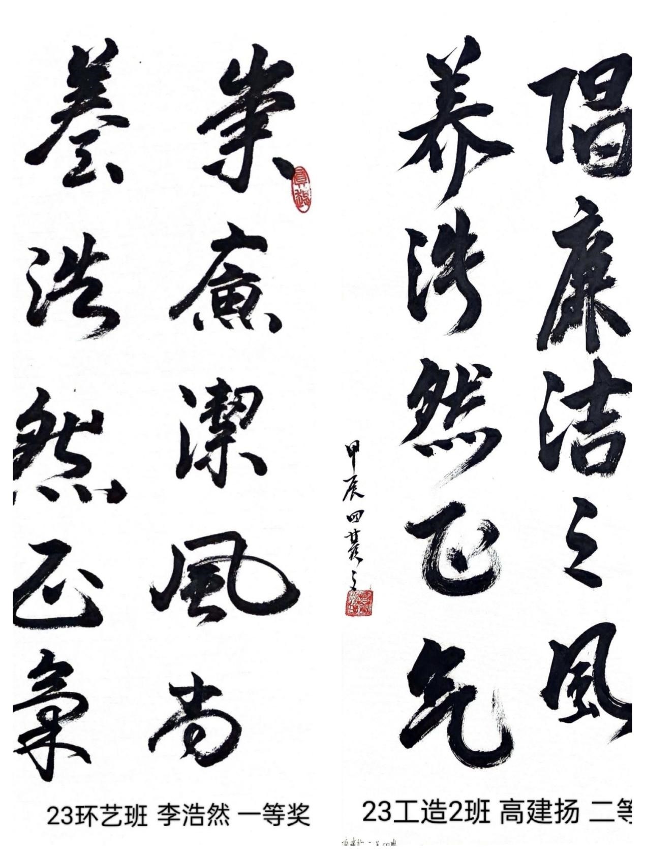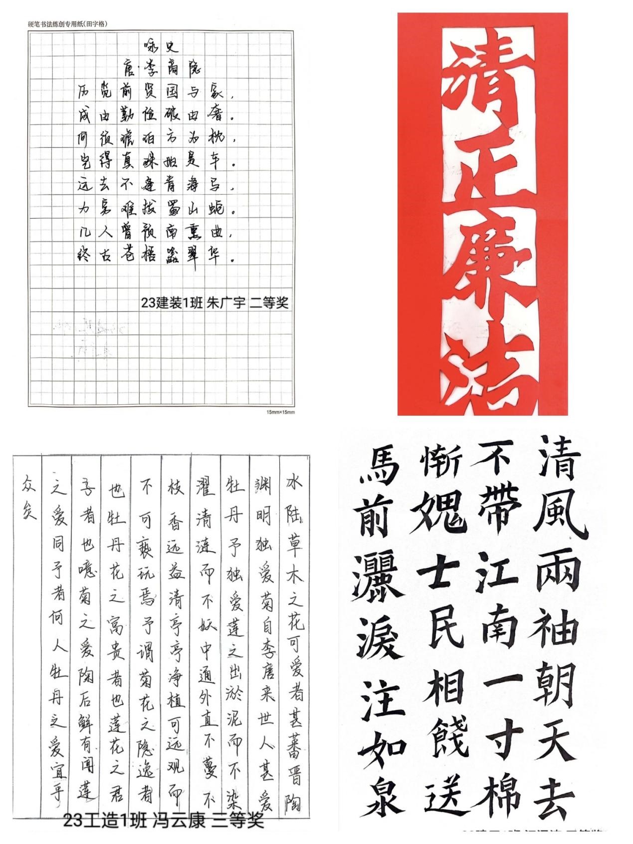 經(jīng)評選,23環(huán)藝?yán)詈迫弧?3工造2班高建揚等6名同學(xué)和23建裝1班王晨琪、張雨露等6名同學(xué)分獲書法剪紙類、繪畫類作品中一、二、三等獎,另評出優(yōu)秀獎若干。