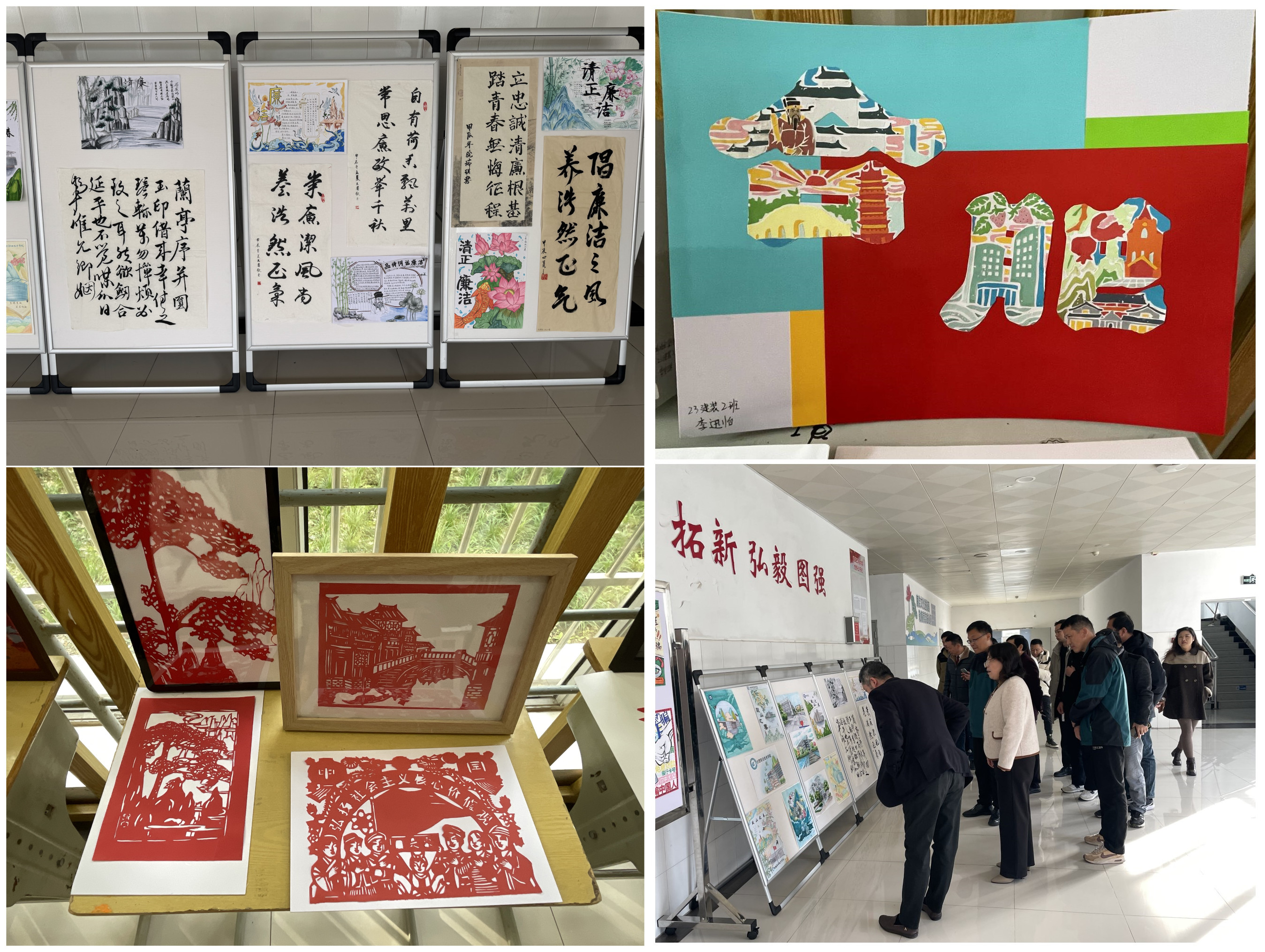 此次會議分兩個階段,第一階段:現場參觀,第二階段:座談交流。與會人員集體參觀了建筑工程學院清廉相關作品展。建筑工程學院發揮自身專業優勢,將清廉元素融匯到繪畫、書法、剪紙、手工等作品中,既弘揚了中華優秀傳統文化,傳播了清廉的思想,又提高了學生專業技能水平。