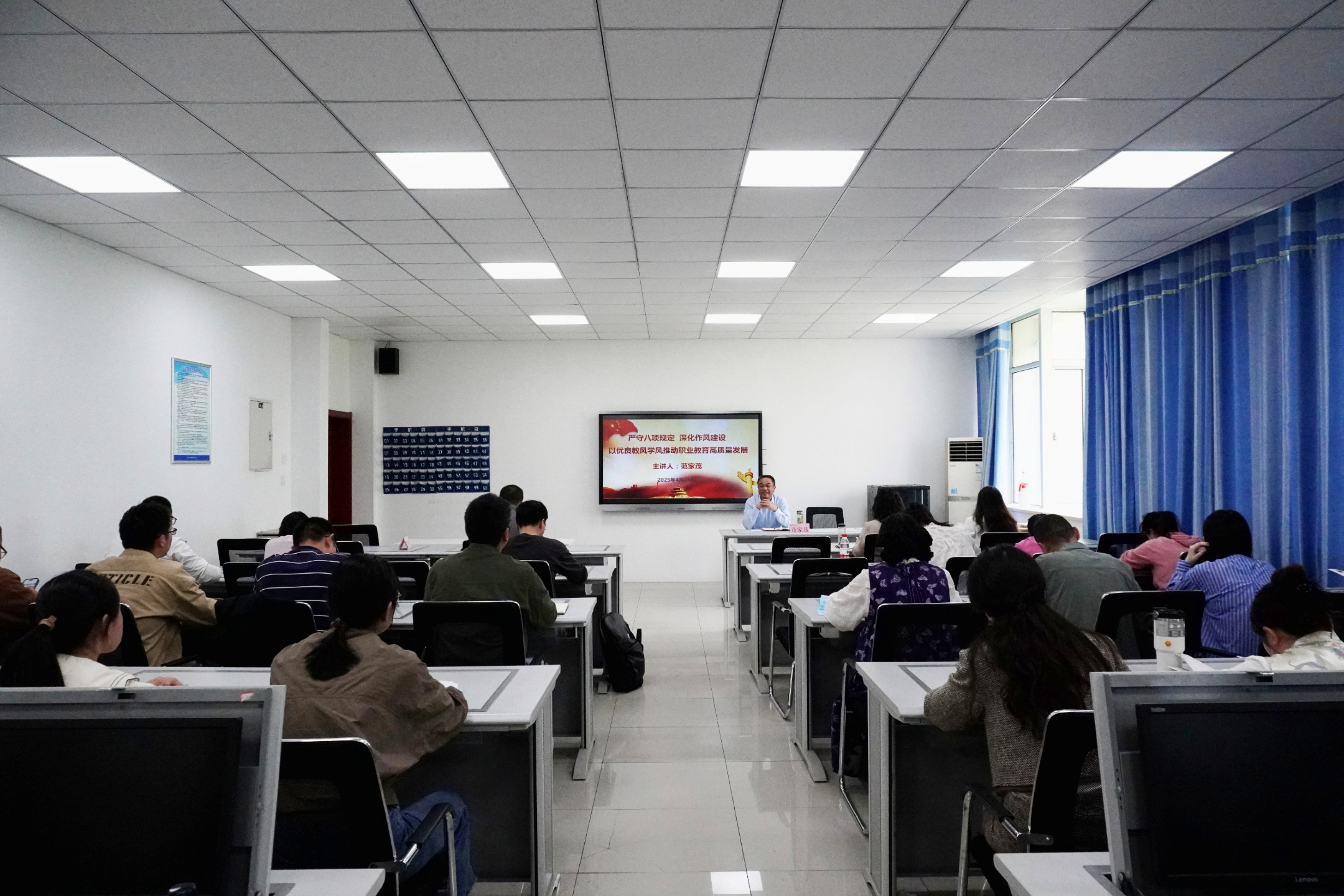 為推動深入貫徹中央八項規定精神學習教育走深走實,持續深化作風建設,推進全面從嚴治黨,4月23日下午,校黨委委員、副校長范家茂以《嚴守八項規定,深化作風建設,以優良教風學風推動職業教育高質量發展》為題,為建筑工程學院全體教職工講授深入貫徹中央八項規定精神專題黨課。