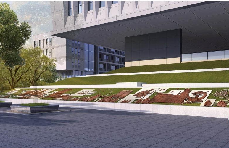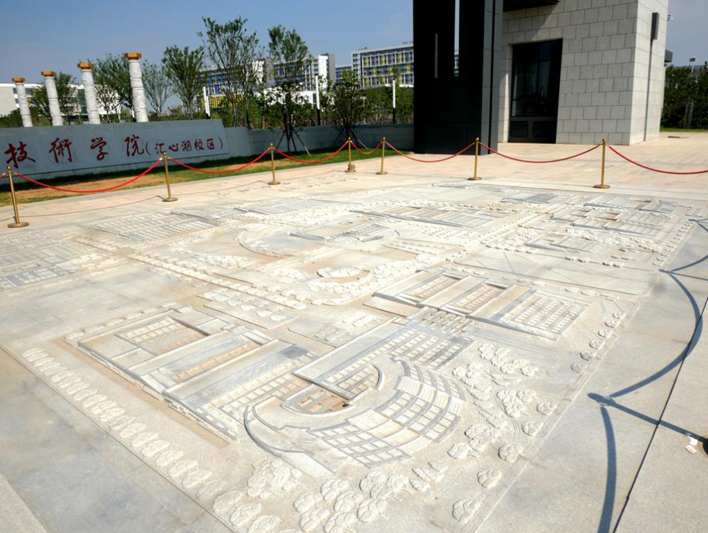 位于學校東大門入口處,地雕以時間為軸,將學校的發展歷史有機結合,以學校不同時期的建筑風貌為元素緩緩展開,猶如流淌的河流不斷匯集,流向新的地域,進入嶄新的發展時代,使學校具有歷史的記憶和未來的憧憬。